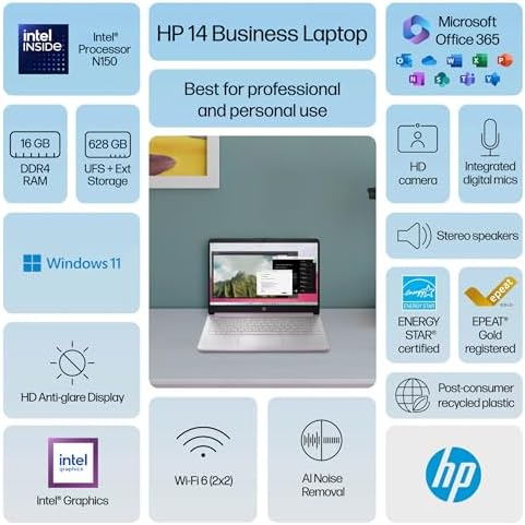 Sponsored Ad - 14 Laptop Student Business 2025 Flagship Computer, AI Copilot, 4-Core 13th Gen Intel CPU, 16GB RAM 628GB Storage (128GB UFS+500GB Ext) 1-Yr Office 365 Long Battery HubxcelAccessory Win
