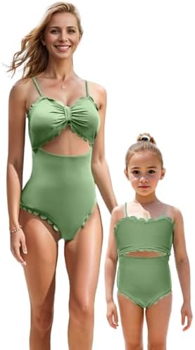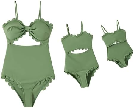 IFFEI Mommy and Me Matching Outfits Women's One Piece Swimsuits Cutout Scallop Trim Monokini Swimwear Bathing Suit