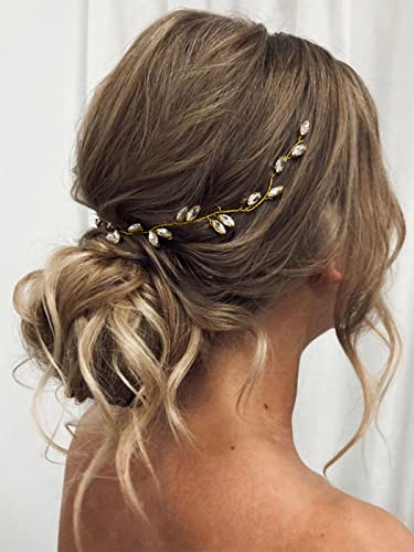 JAKAWIN Bride Rhinestone Wedding Hair Vine Crystal Hair Piece Bridal Headpiece Hair Accessories for Wome HV190 (2 Gold)