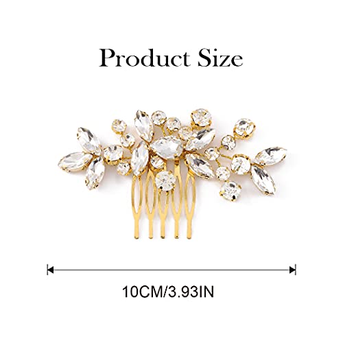 JAKAWIN Bride Wedding Hair Comb Crystal Hair Piece Rhinestone Bridal Hair Accessories for Women HC042 (Gold)