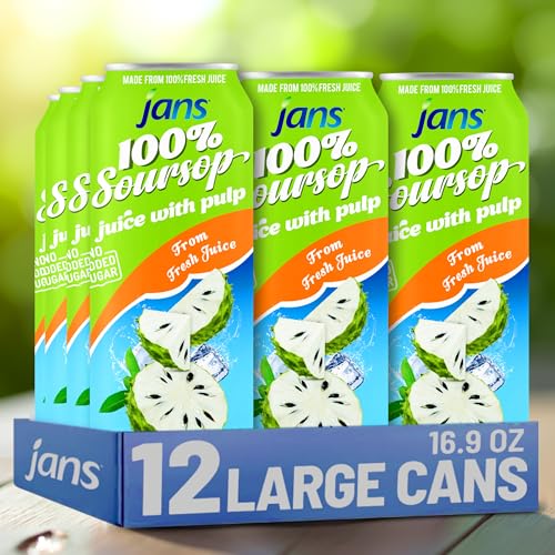 Soursop Juice with Pulp (Guanabana), 16.9 oz (Pack of 12) JANS | 100% Pure Soursop Graviola | NO Sugar Added, NOT From Concentrate, Fat-Free, Cholesterol-Free, Refreshing Taste of the Tropics