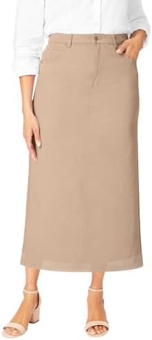 Sponsored Ad - Women's Plus Size Classic Cotton Denim Midi Skirt Pockets Long Jean Skirt