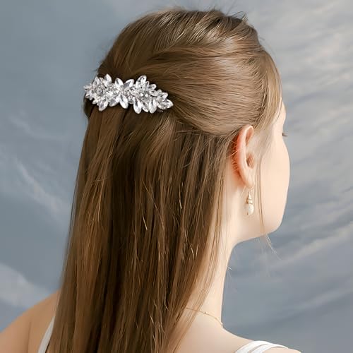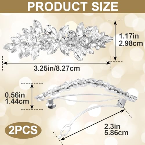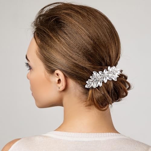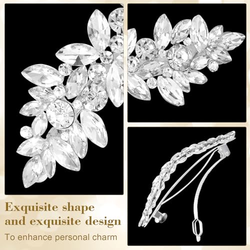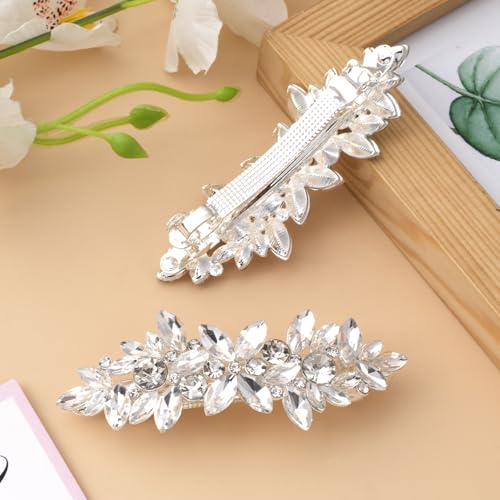 Joez Wonderful 2 Pcs Rhinestone Hair Clips, Silver Bridal Hair Accessories for Women, Sparkly Crystal Hair Pins, Fancy Flower Hair Barrettes for Wedding, Bride (Rhinestone)