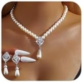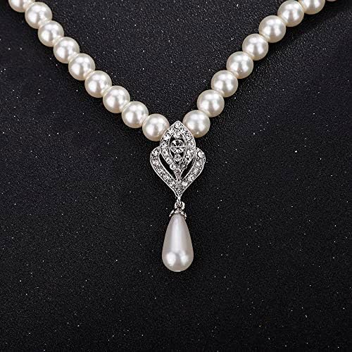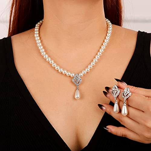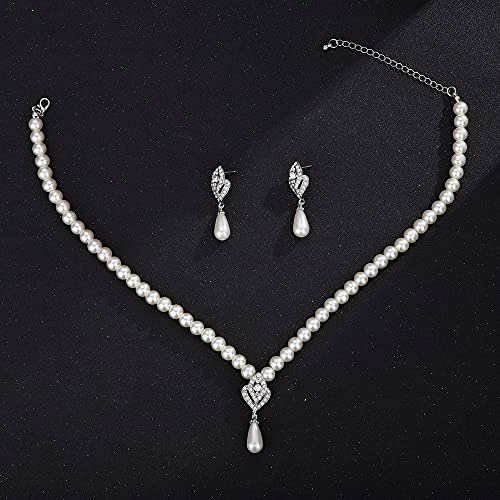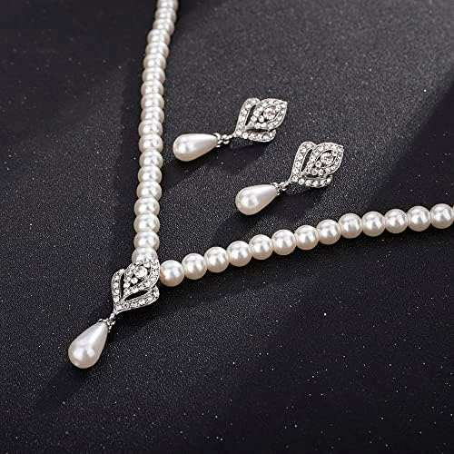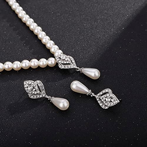 JWICOS Pearl Bridal Necklace Earrings Set Sliver Rhinestone Necklaces Crystal Bride Choker Necklace Accessories for Women and Wedding