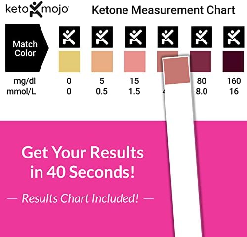 Keto-Mojo Ketone Test Strips 150ct for Ketogenic Diet - Urine Testing for Ketosis Monitoring - Extra Long with Free Keto Guide eBook & App