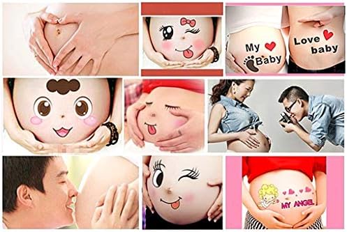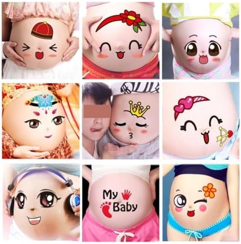 Photo Booth Props for Expectant Mothers,Pregnancy Facial Expressions Sticker Pregnant Women Baring Belly Bump Paster Unborn Baby Photographying Props(9 Sheets with Different Expressions)