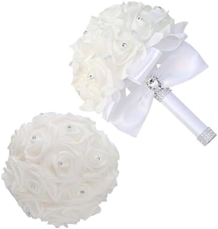 Sponsored Ad - Wedding Bouquets for Bride, Wedding Bridal Bouquet Crystal Diamond Silk Roses, Bride Bridesmaid Wedding Hand Roses Bouquet Artificial Flowers Bouquet for Wedding Churches Parties (White