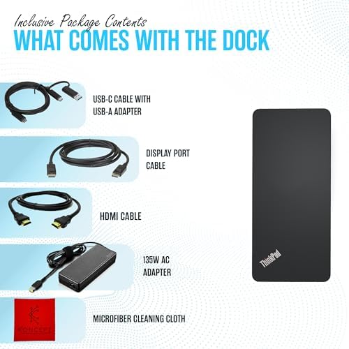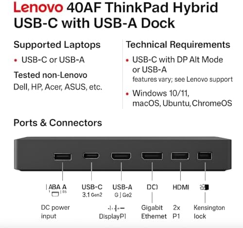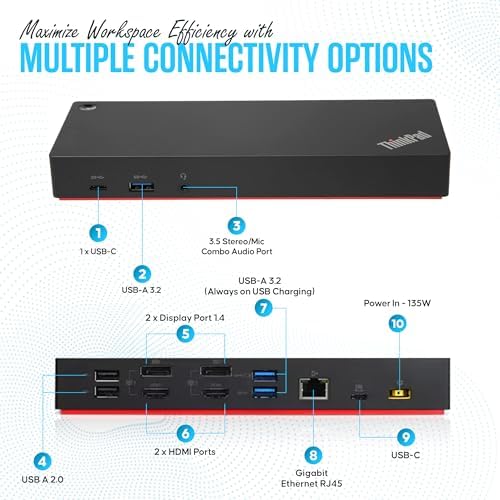 40AF0135US Lenovo Docking Station Dual Monitor Hybrid USB-C with USB-A, 135W, HDMI & DisplayPort Cable - Thinkpad Dock Station
