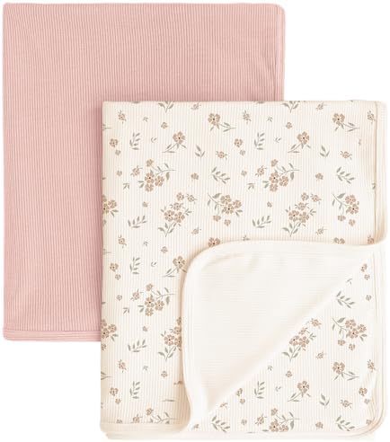 Sponsored Ad - Konssy Knit Baby Blanket 2 Pack, Soft Ribbed Swaddle Receiving Blankets for Boys & Girls, Lightweight Cozy Swaddling Wrap for Newborns, Infants, & Toddlers, 33x42 Inch (Blossom,Pink)