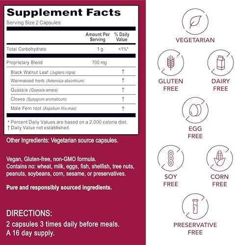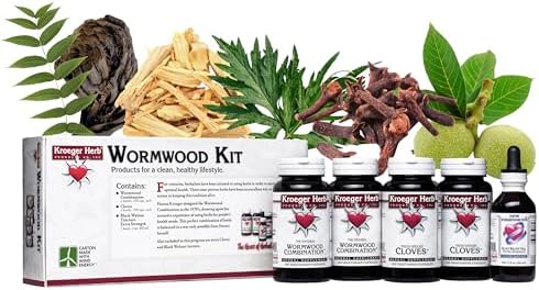 Kroeger Herb Products, Wormwood Herb Supplement Kit, Black Walnut, Clove, Quassia, Worm Wood Detox Cleanse - Capsules, Non-GMO, Gluten Free, No Preservatives or Fillers, Made in USA