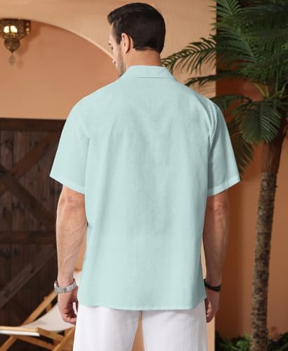 Sponsored Ad - Linen Shirts for Men: Casual Cotton Mens Short Sleeve Button Down Shirts Beach Wedding Summer Clothes with Pocket