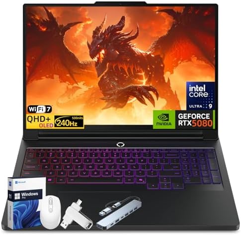 Legion Pro 7i 2025 Gaming Laptop, NVIDIA RTX 5080 16GB GDDR7, Intel Ultra 9 275HX, 16 inch 2560x1600 240Hz OLED, WiFi 7, BT 5.4, 64 GB DDR5, 8 TB SSD, Windows 11 Pro, Accessories