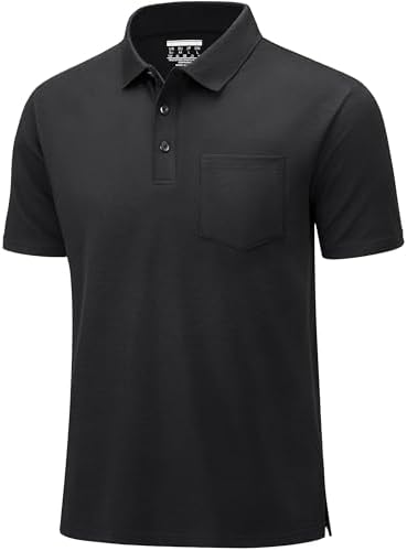 Mens Polo Shirts Short Sleeve Cotton Pique Golf Shirts with Pocket Casual Performance Moisture Wicking Polos Black M