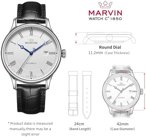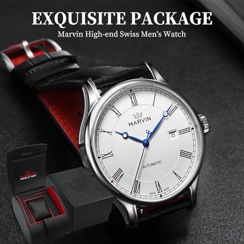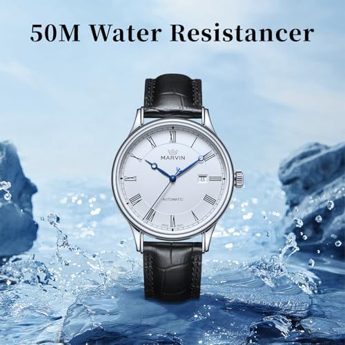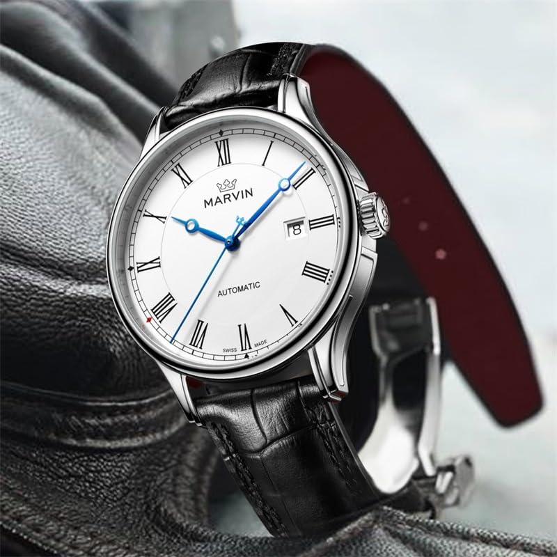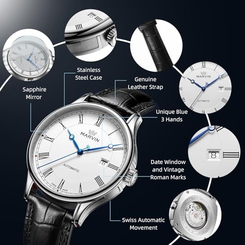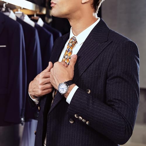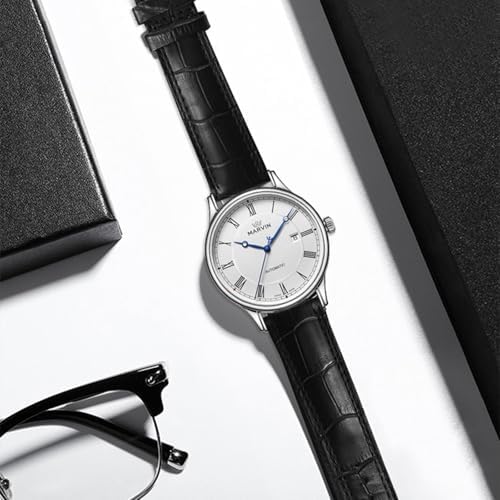 Sponsored Ad - Automatic Watch for Men Swiss Movement Mechanical Mens Dress Watches with Black Genuine Leather Strap and 42MM Dia Round Sapphire Glass Dial,3 Blue Hands, 50M Waterproof