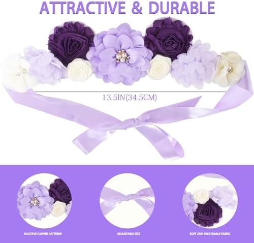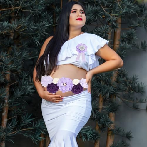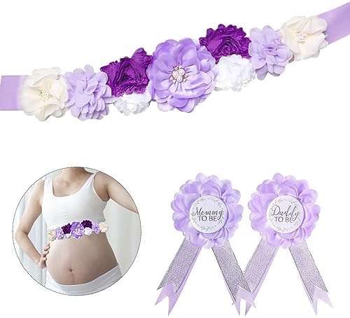 Maternity Sash and Corsage Pin Kit, Violet Baby Shower Decorations Corsage Pin and Flower Maternity Sash for New Mommy and Daddy Pregnancy Photo Props Supplies