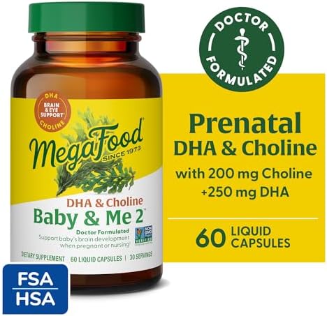 MegaFood Baby & Me 2 Prenatal Vitamins for Women, DHA & Choline Supplements, Liquid DHA and Choline for Baby's Brain and Eye Development During Pregnancy, Vegan, 60 Capsules (30 Servings)