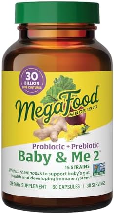 MegaFood Baby & Me 2 Prenatal Prebiotics and Probiotics for Women & Developing Baby with 30 Billion CFU, Vegetarian and Non-GMO, 60 Caps (30 Servings)