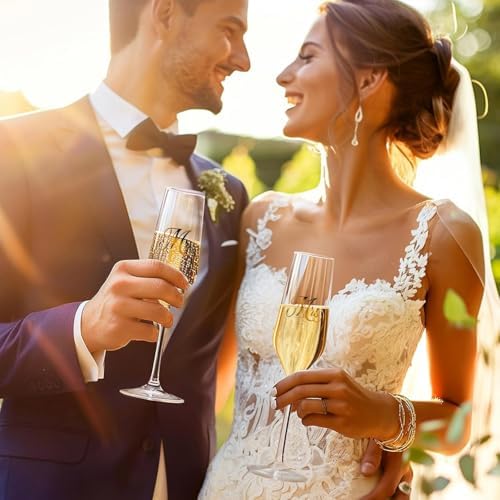 Mfacoy Mr. & Mrs. Champagne Flute Set, Wedding Decor - His and Hers, Wedding Toasting Glasses for Engagement Celebrations, Bridal Shower and Registry Idea, Tall Wine Glasses for Bride and Groom Gifts