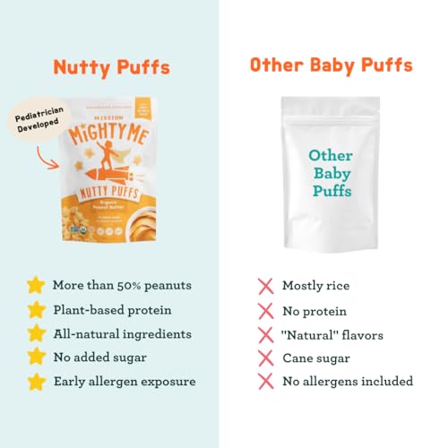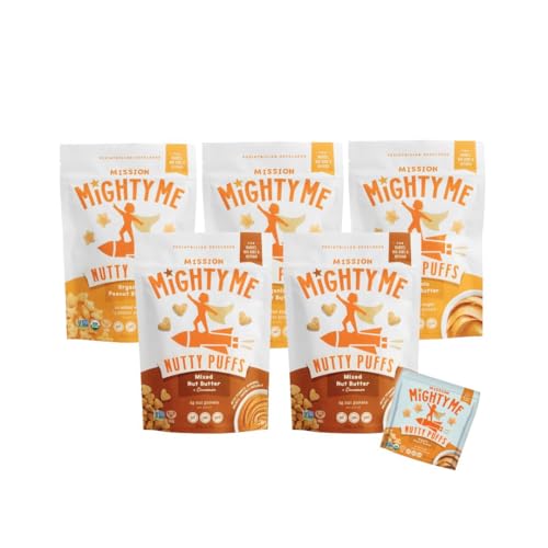 Mission Mighty Me Nutty Puffs Peanut + Mixed Nut Butter Variety for Babies + Kids – Plant-Based, Gluten-Free, Pediatrician Developed (Peanut, Mixed Nut, and Bonus Sample)
