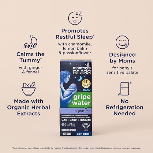 Sponsored Ad - Mommy's Bliss Gripe Water Night Time, Infant Gas & Colic Relief, Gentle & Safe, 2 Weeks+, 4 FL OZ Bottle (Pack of 1)