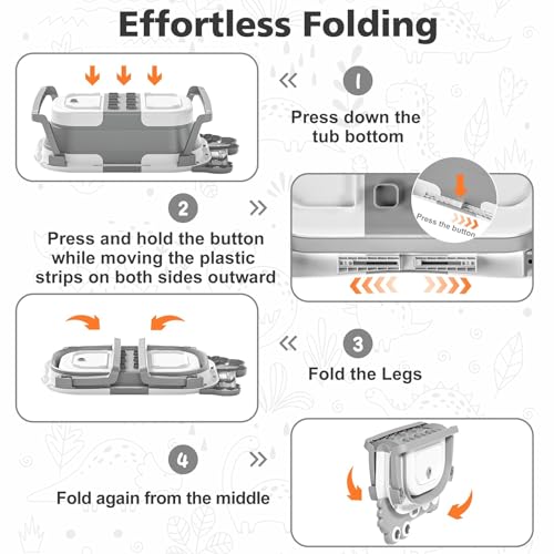 MoreFeel Collapsible Baby Bathtub for Newborn with Thermometer & 1 Hooded Towel & 1 Soft Floating Cushion,Portable Travel Bathtub with Drain Hole, Durable Foldable Baby Tubs for Infants to Toddler