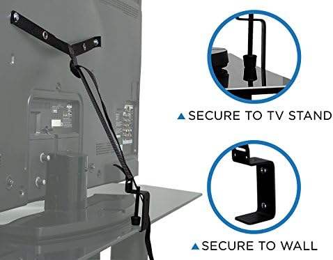Mount It! TV Safety Straps For Child and Baby Proofing, Anti Tip Prevention and Earthquake Protection, Heavy Duty Metal Connectors, Secures to TV Stand and Walls, Black