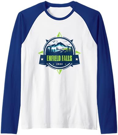Mountain Adventure Design: Hiking & Camping in Enfield Falls Raglan Baseball Tee