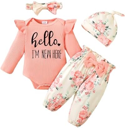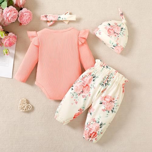 Newborn Infant Baby Girl Clothes Outfits Rib Romper Floral Pants with Headband Winter Clothing Set