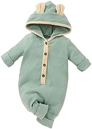 Newborn Baby Girl Boy Hooded Romper Unisex Baby Knitted Jumpsuit Infant Kids Solid Outfits Baby Girl Boy Jumpsuit