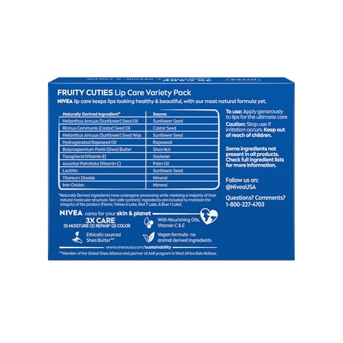 Lip Care, Fruity Tinted Lip Balm Variety Pack, Cherry, Strawberry, Blackberry and Watermelon Flavors, 3-in-1 Moisture, Repair and Color, 0.17 Oz Stick, Pack of 4