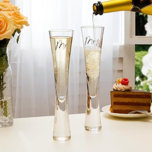 Sponsored Ad - NUTRIUPS Mr & Mrs Champagne Flutes, Wedding Toasting Flutes for Bride and Groom, Hand Blown Crystal Prosecco Glasses for Anniversary, Set of 2
