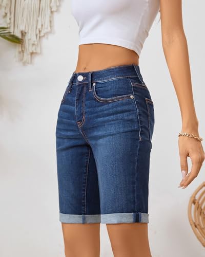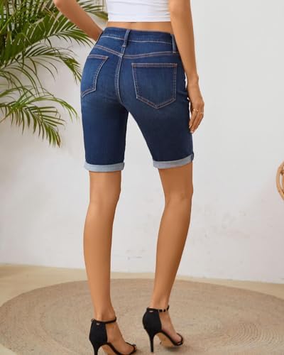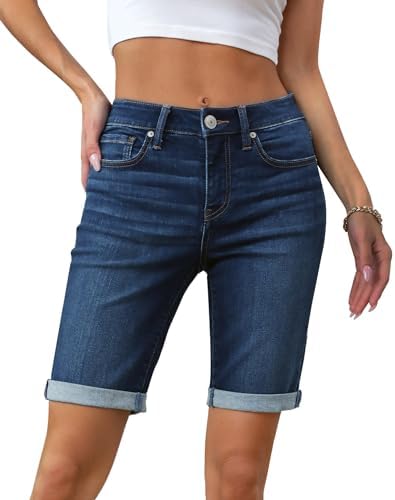 Sponsored Ad - Shorts for Women Mid Rise Roll Cuff Bermuda Stretch Denim Jean Shorts
