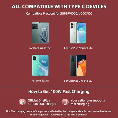 USB C to USB C Cable 3.3ft for OnePlus 10T Nord 2T 5G 9 8T, 100W Max SUPERVOOC 80W Fast Charging Data Transfer Car Charger USBC Cord Type C Wire for Samsung Galaxy Android Tablets Laptops Red