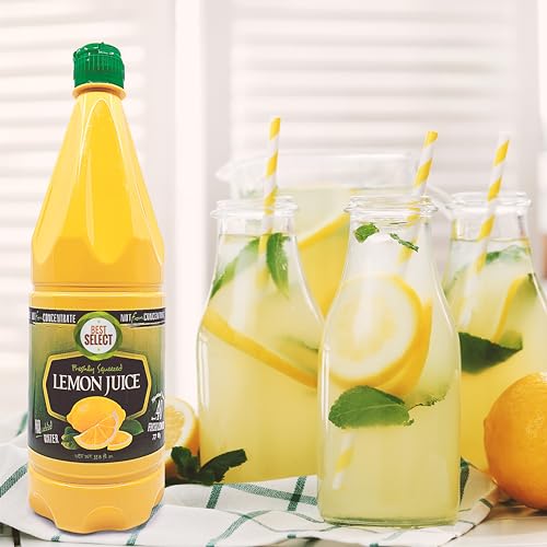 2 Pack 100% Lemon Juice 33.8 Oz - No Added Water - Fresh Squeezed Lemon Juice Not From Concentrate - Approximately 40 Lemons Fresh in Each Bottle - Kosher - Healthy Drinks & Citrus Zest - Best Select