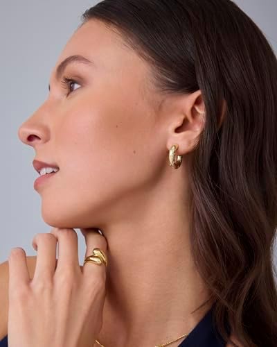 Sponsored Ad - PAVOI 14K Gold Plated Star Shine Hoop Earrings for Women | Cubic Zirconia Celestial Chunky Hoops Earrings