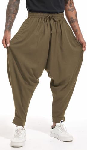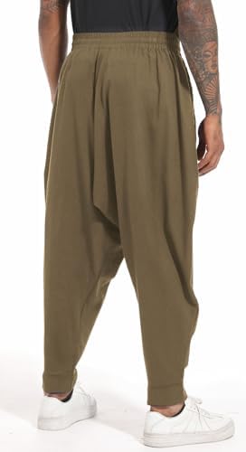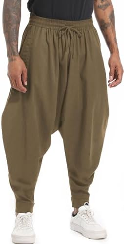Mens Harem Pants Loose Fit Elastic Waist Drawstring Aladdin Hippie Trousers