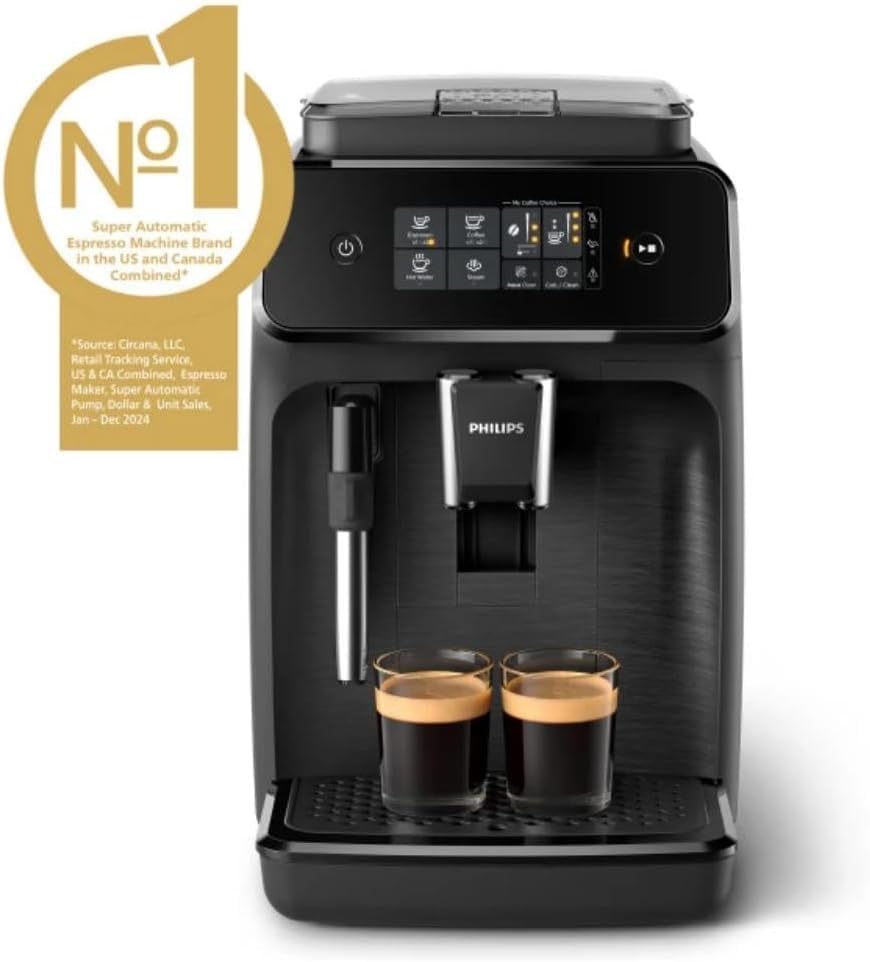 1200 Series Fully Automatic Espresso Machine, Classic Milk Frother, 2 Coffee Varieties, Intuitive Touch Display, 100% Ceramic Grinder, AquaClean Filter, Aroma Seal, Black (EP1220/04)