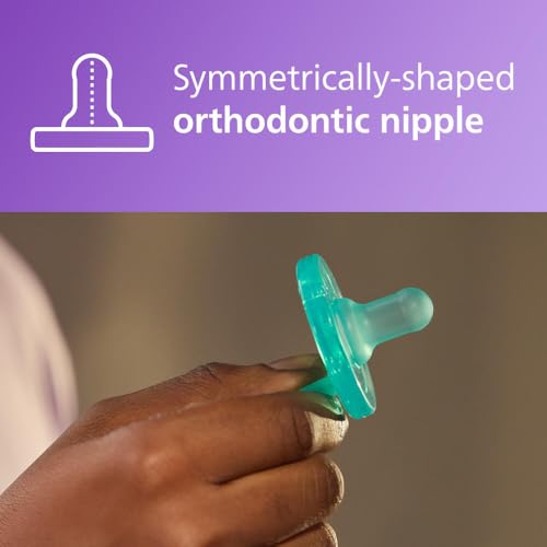 Philips Avent Soothie Orthodontic Baby Pacifiers, 100% Silicone Pacifiers, One Piece, BPA-Free, for Babies 0-3 Months, Green, 4 Pack, Model SCF190/41