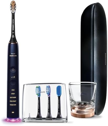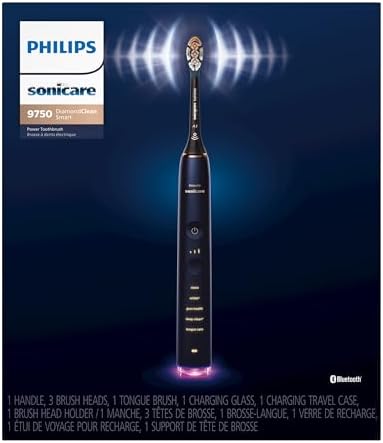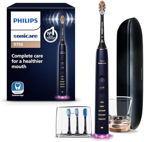 DiamondClean Smart 9750 Electric Toothbrush, Sonic Toothbrush with App, Pressure Sensor, Brush Head Detection, 5 Brushing Modes and 3 Intensity Levels, Lunar Blue, Model HX9954/74