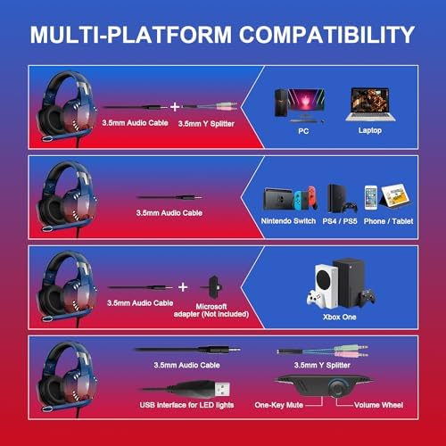 PHOINIKAS PC Gaming Headset, G2000 Stereo Gaming Headset for PS5 XboxOne Switch Controller, Wired Over Ear Headphones with Mic, 7.1 Surround, for PS4/Laptop/Tablet (2 PCS)