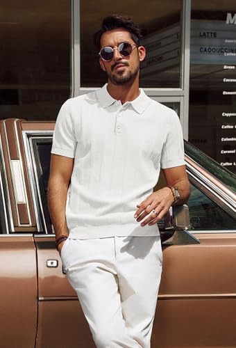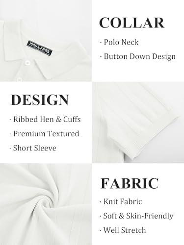 Mens Polo Shirts Short Sleeve Textured Knit Polo Shirt Ribbed Casual Golf Shirts