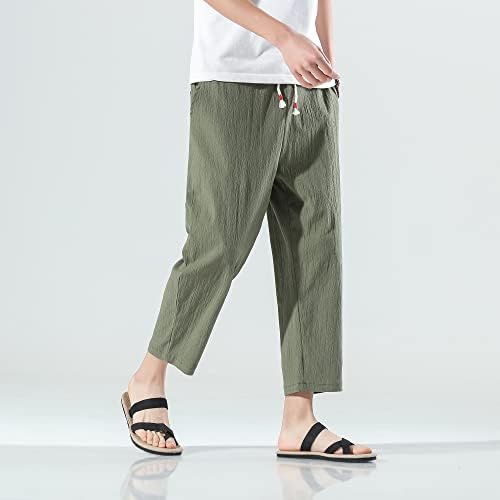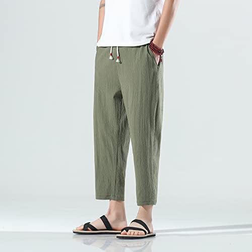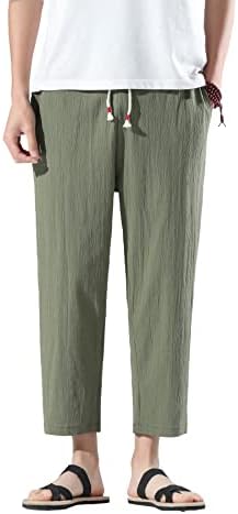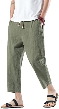 Mens Harem Pants Casual Lightweight Loose Fit Capri Pants Linen Beach Pants with Elastic Waistband