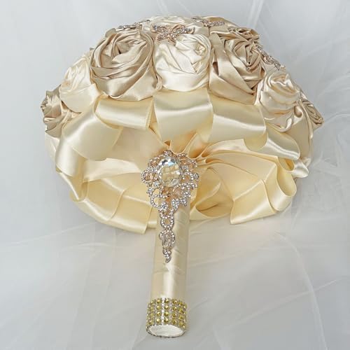 Sponsored Ad - Handmade Floral Satin Rose Butterfly Shape Rhinestone Bridal Bouquet Luxury Golden Rhinestone Artificial Flowers for Wedding