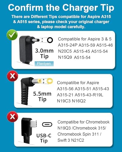 Laptop Charger Compatible with Acer Aspire 3 5 Series A315 A515 A315-24P A315-59 A515-46 A515-45 A515-54 N20C5 N15Q9 A315-24P-R7VH AG15-31P-3947 A315-23 A514-54 A515-56