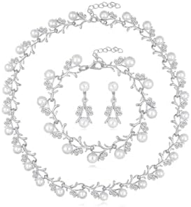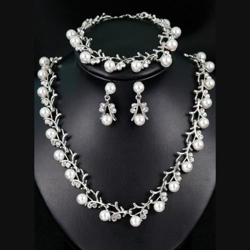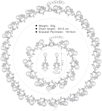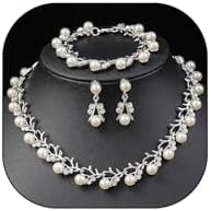 Sponsored Ad - Rhinestone Pearl Wedding Jewelry Set for Bride Bridesmaid Bohemia Adjustable Beaded Crystal Bracelet Necklace Exaggerated Pearl Earring Set for Women