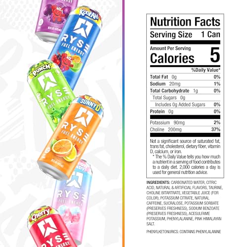 RYSE Fuel Energy Drink - Variety Pack - Sugar Free, Gluten Free & Vegan - 200mg Natural Caffeine, Taurine & Choline for Focus & Energy - No Artificial Colors - 16 fl oz Cans (12-Pack)