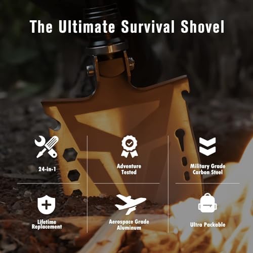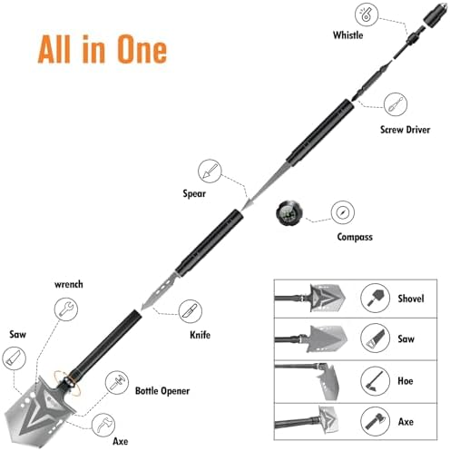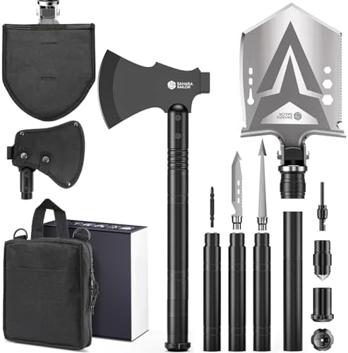 Sahara Sailor Survival Axe, Camping Folding Shovel with Hatchet with Large Shovel Head and 1.6-3.1 Ft Extented Handles, High Carbon Steel Survival Gear Equipment, Storage Bag Included