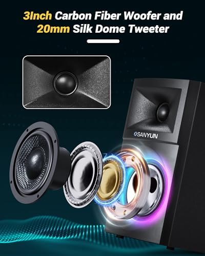 Sponsored Ad - Sanyun SW203 4.0 Computer Speakers - 60W 4-Way DSP Control 3D Immersive Sound - 3" Carbon Fiber Woofer & 20mm Silk Dome Tweeter - 24bit DAC USB/Bluetooth 5.4/AUX - Studio-Grade Audio (P