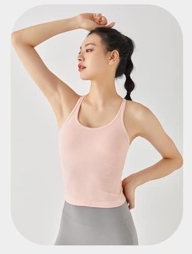 Sponsored Ad - Ribbed Workout Short Racerback Tank Tops for Women with Built in Bra