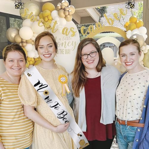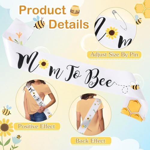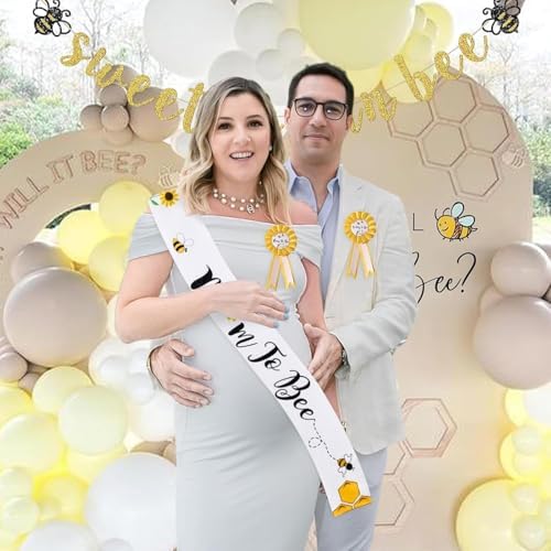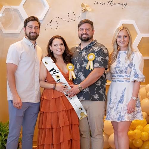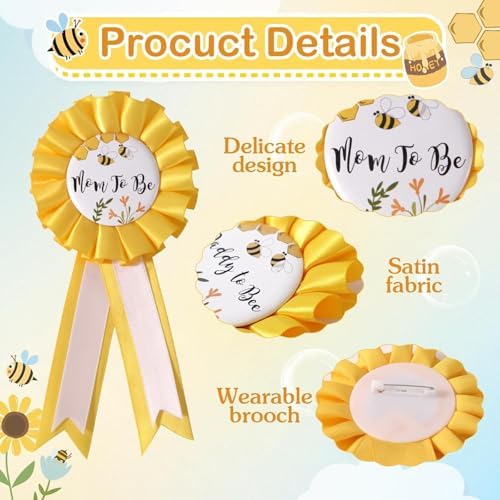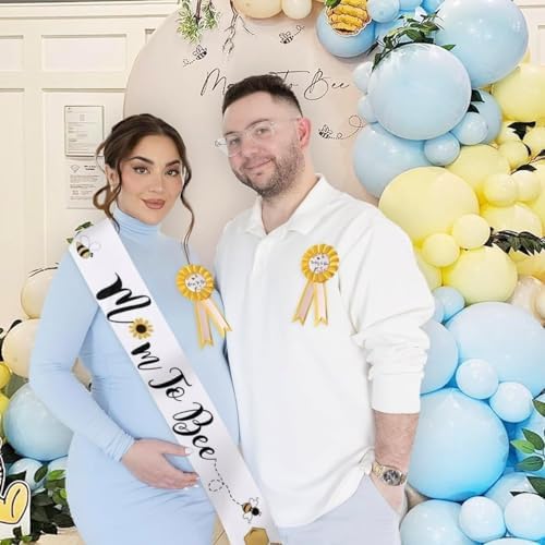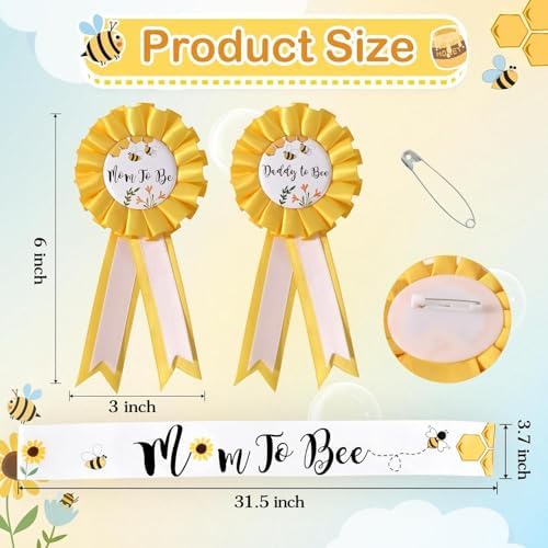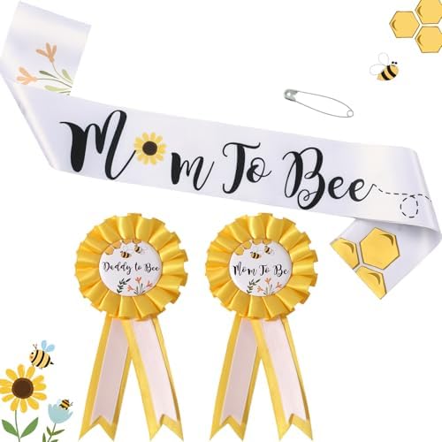 Bee Baby Shower Decorations Mommy to Bee Sash and Daddy to Bee Tinplate Badge, 3Pcs Mom to be Sash and Dad to be Pin for What Will Baby Bee Gender Reveal Decorations